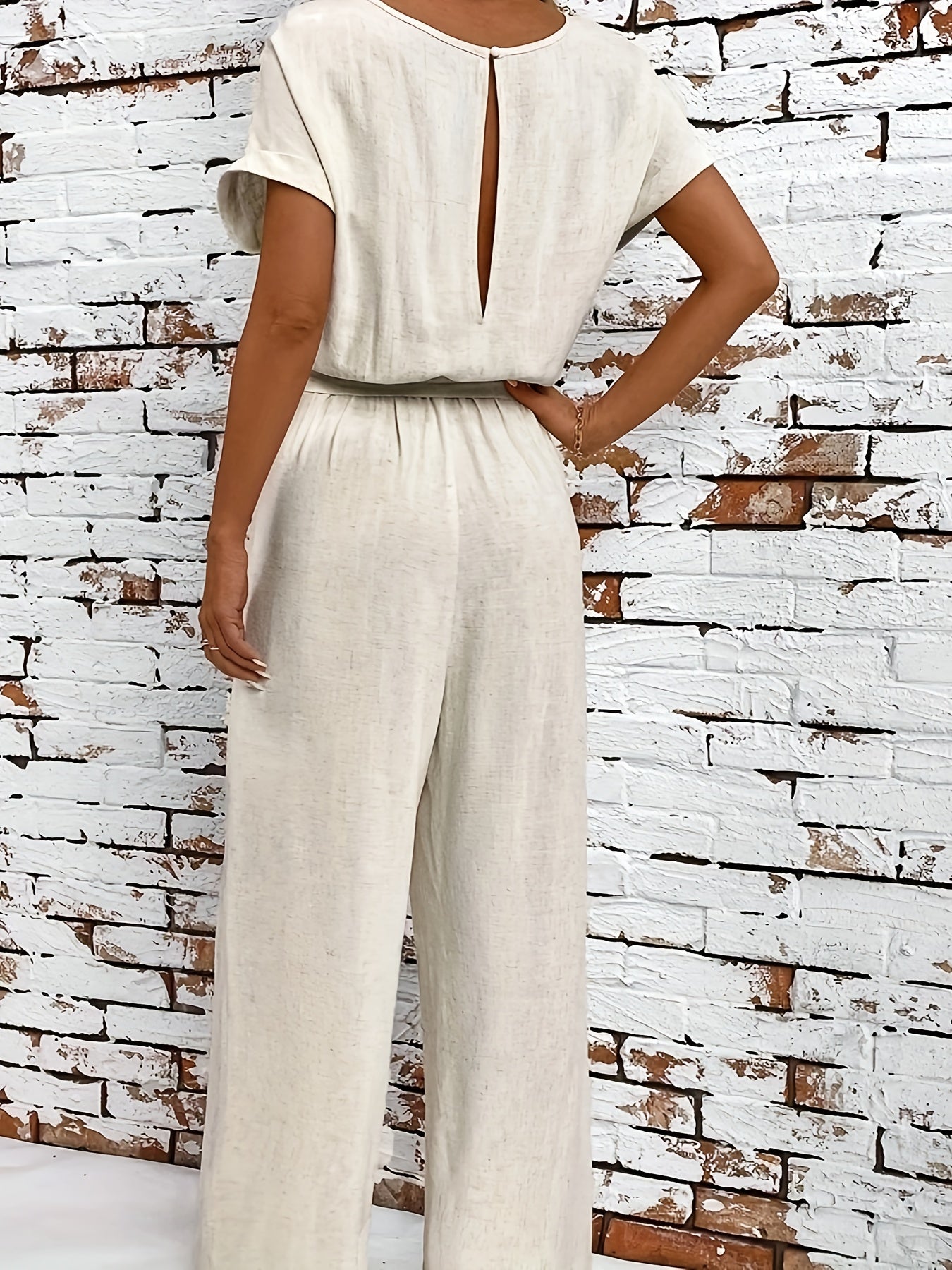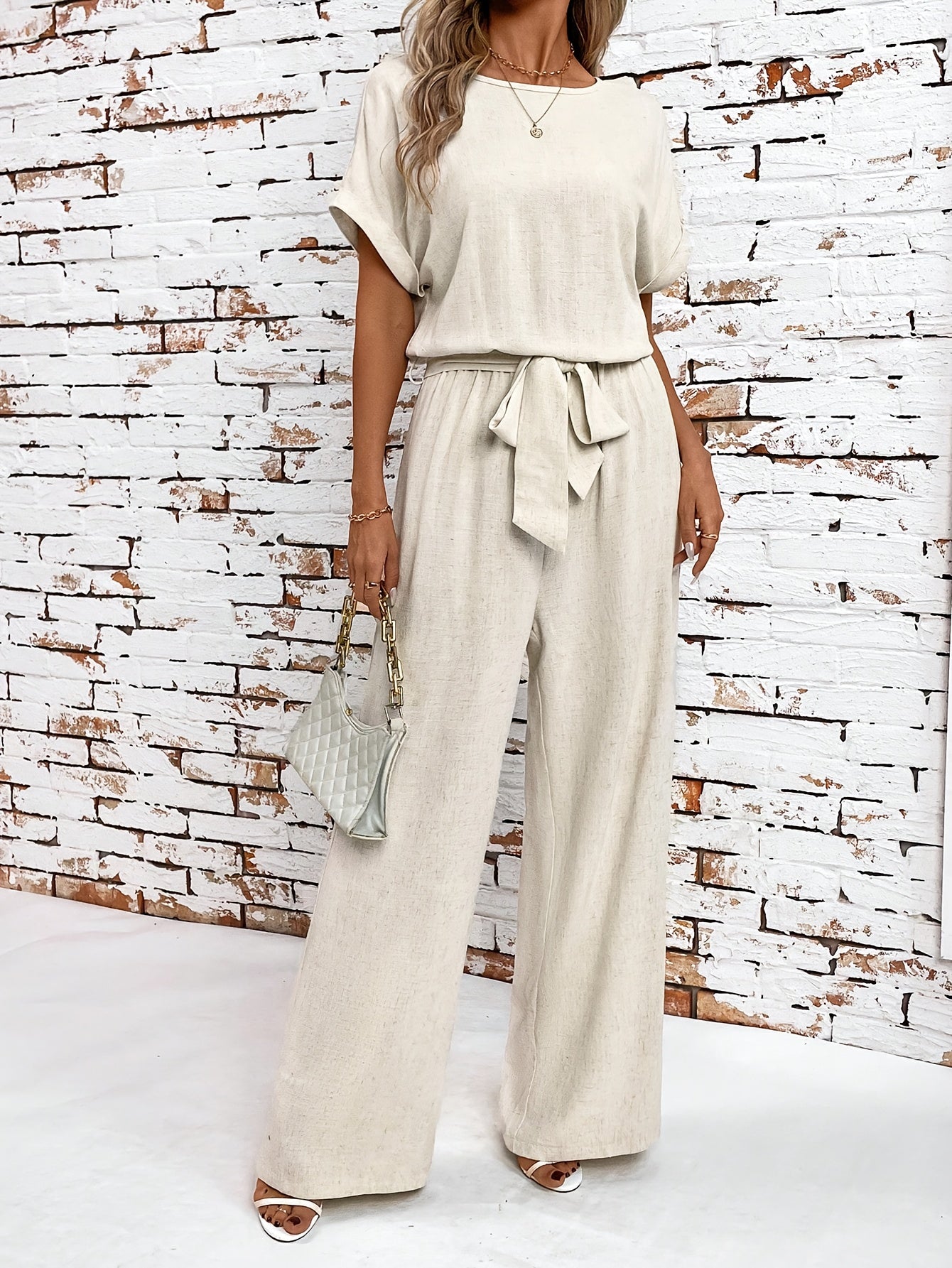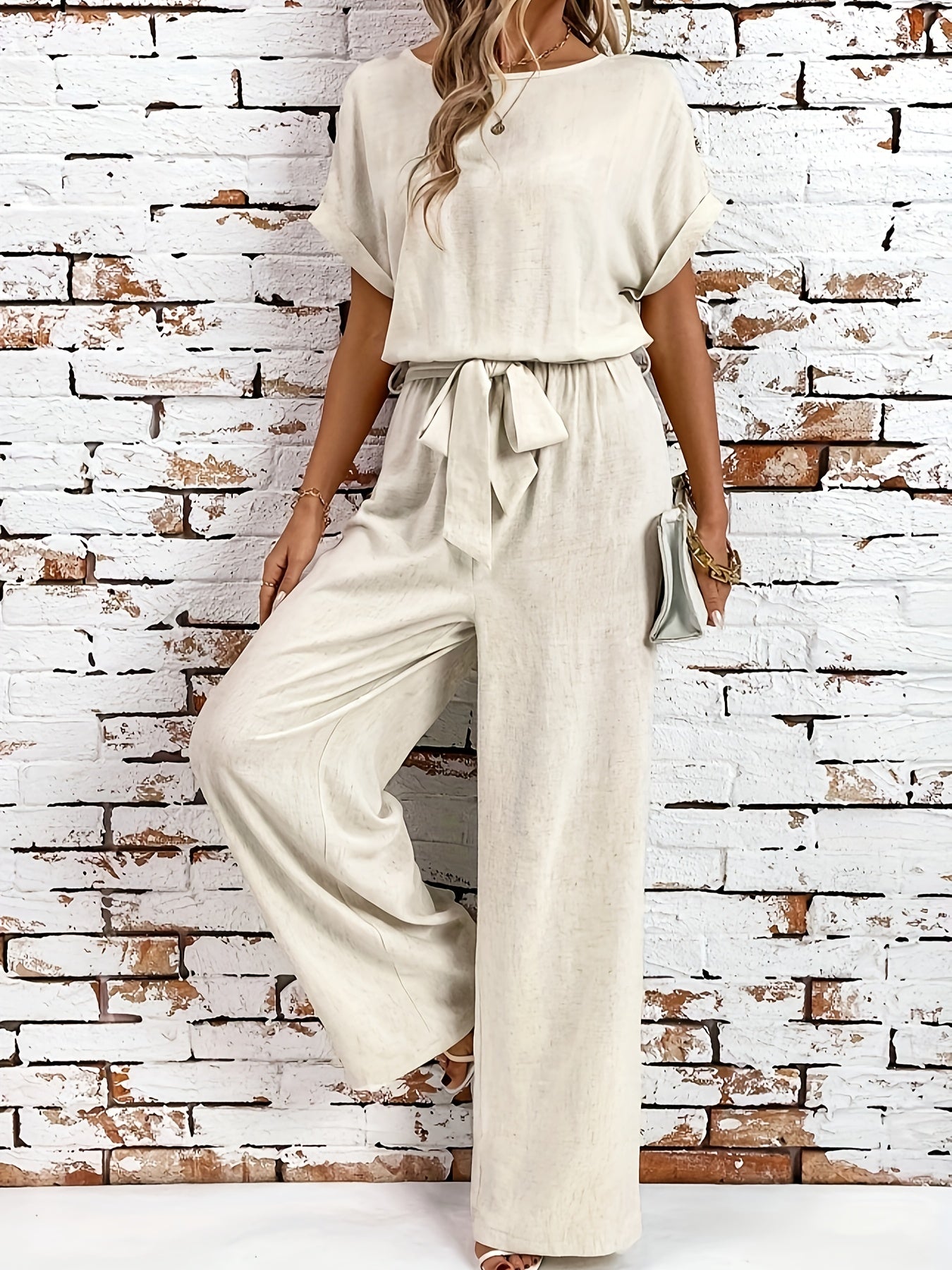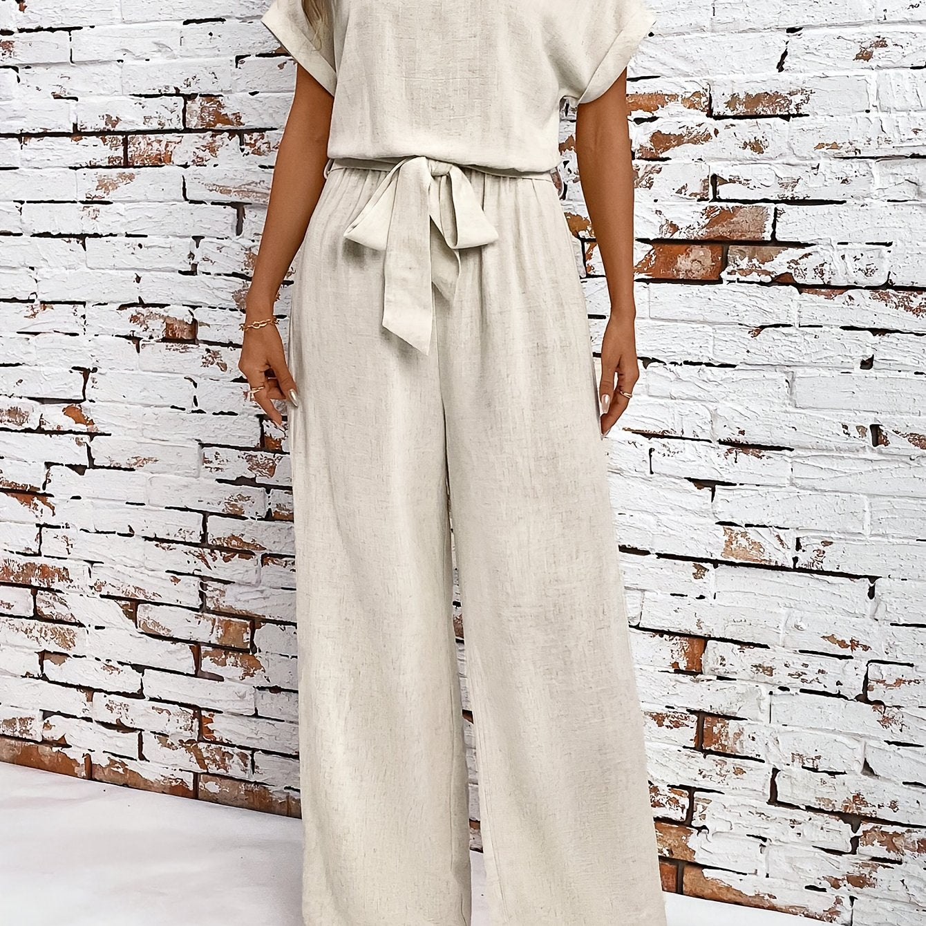 Letni zestaw damski z okrągłym dekoltem i rękawami nietoperzowymi