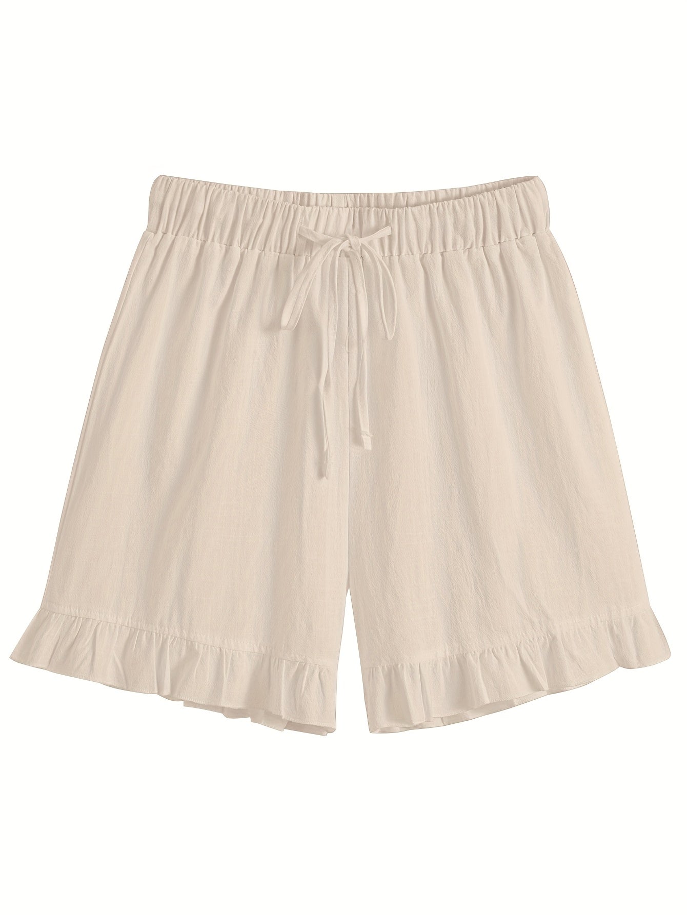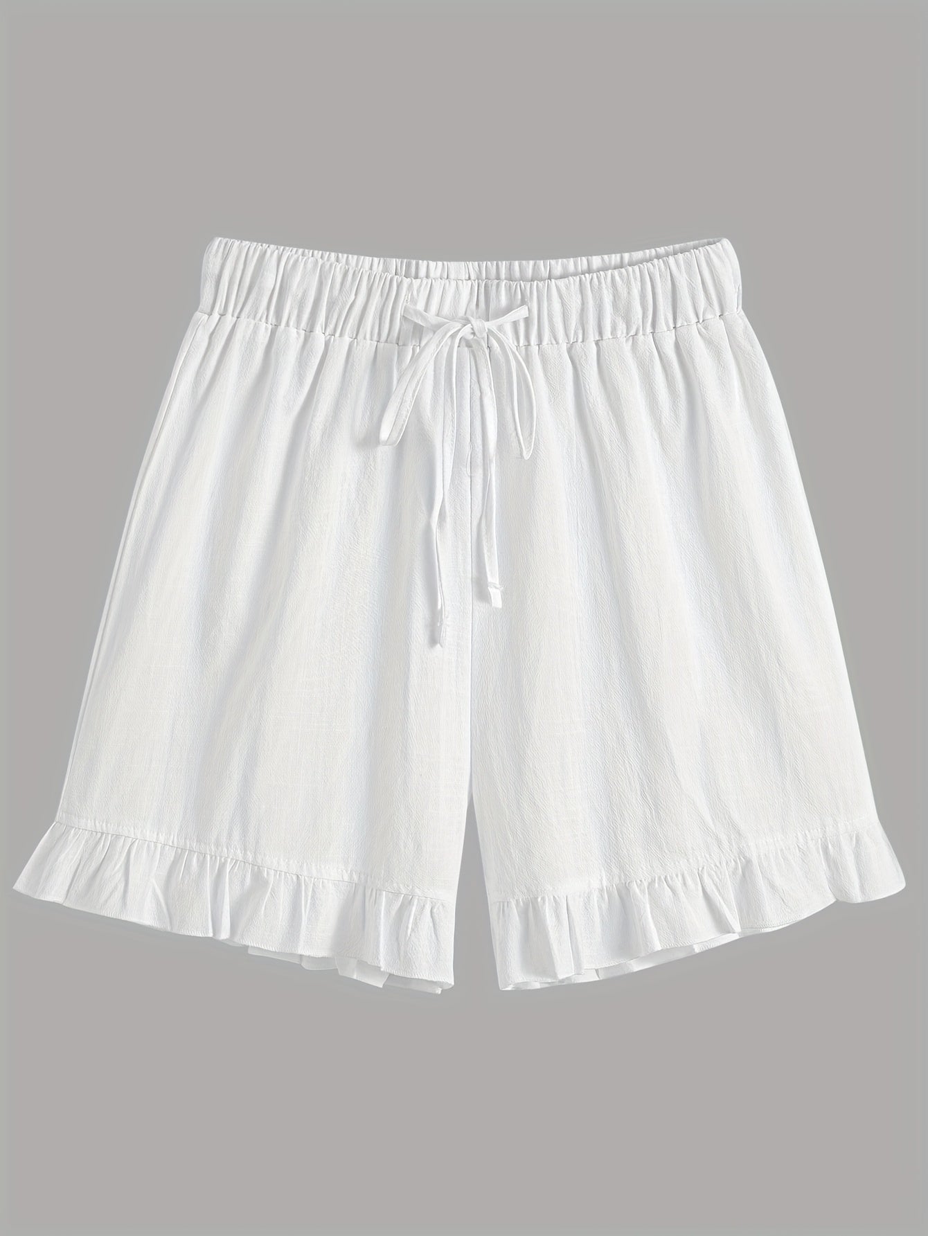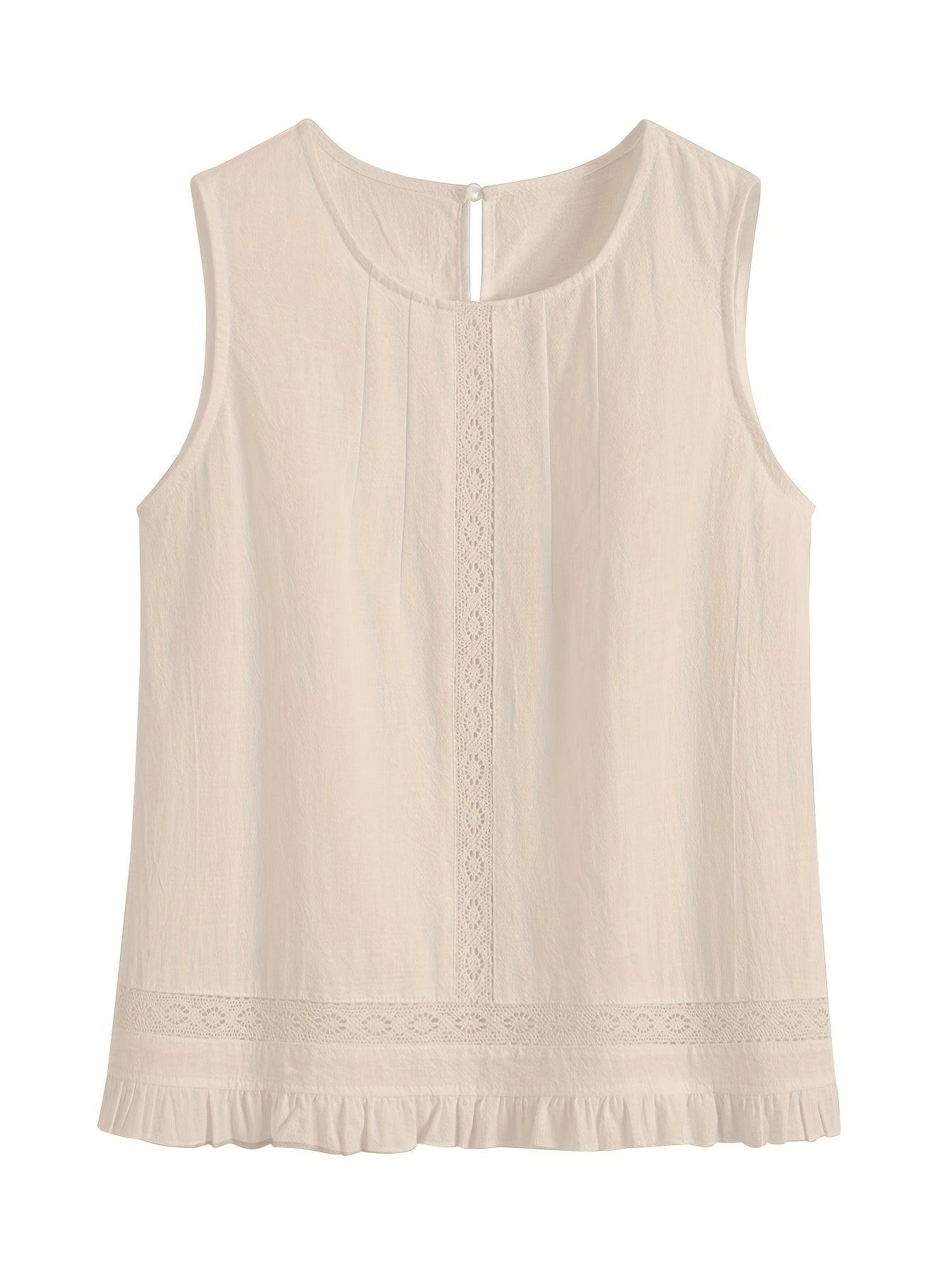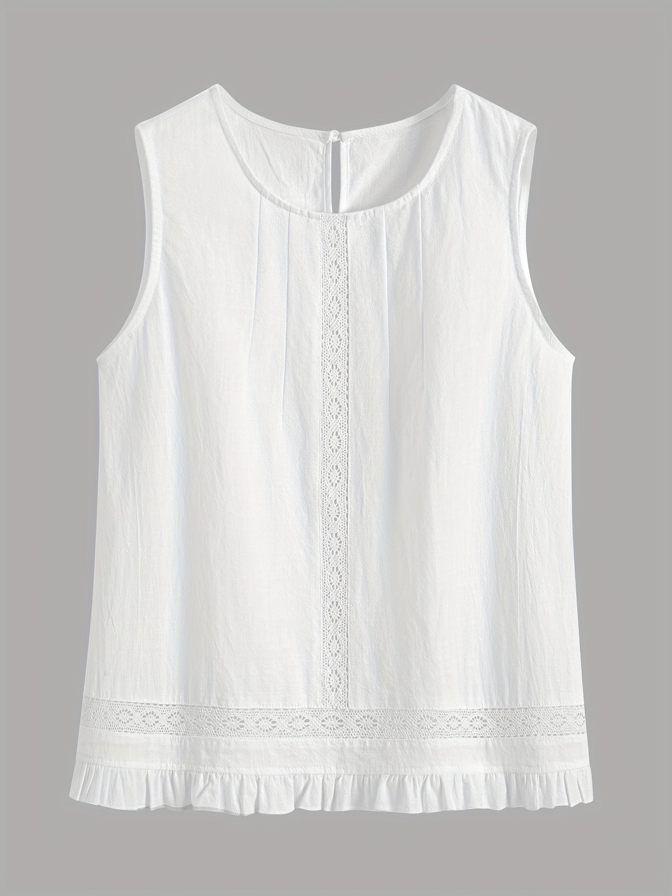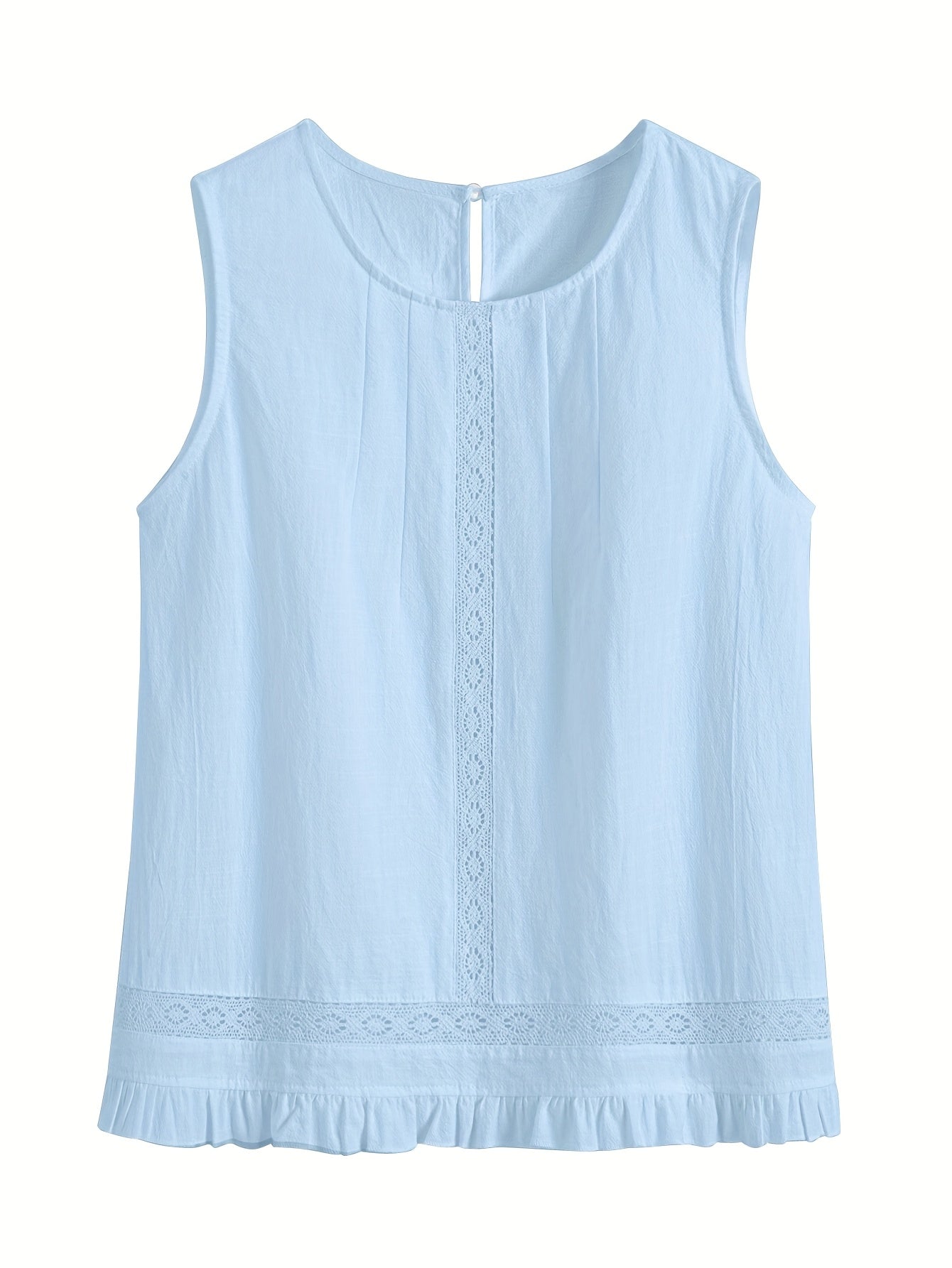 Luźny bawełniany komplet – bluzka z koronką bez rękawów i szorty z falbanką
