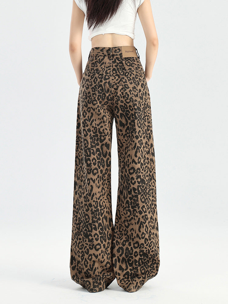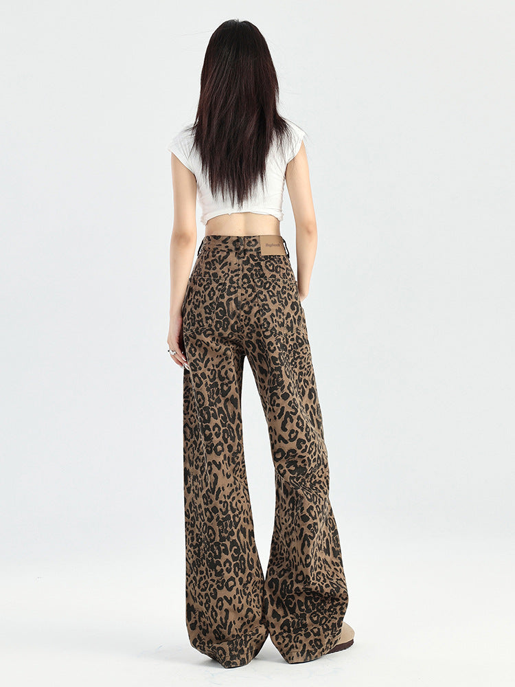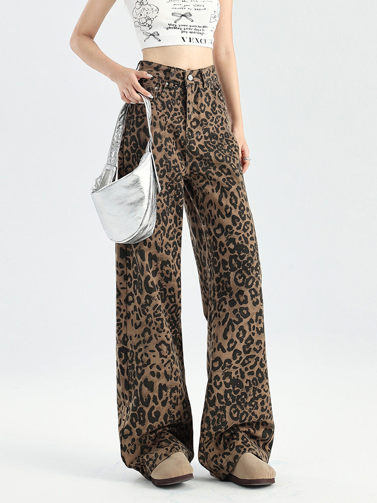 Stylowe spodnie z motywem panterki, które podkreślą Twoją pewność siebie. Luźny krój i wysoki stan zapewniają komfort i modny wygląd na co dzień i na wyjście.