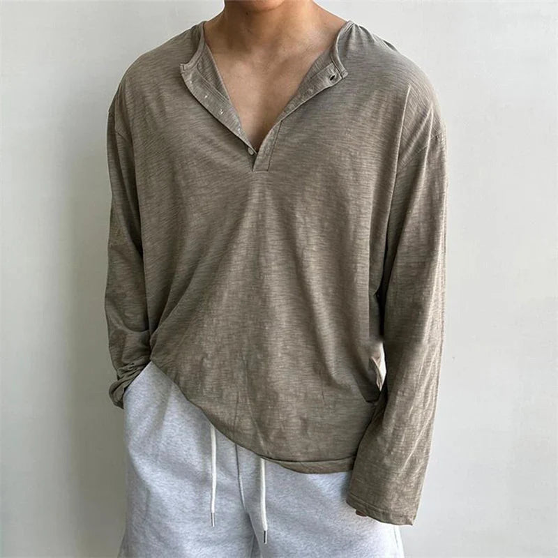 Wykonana z wysokiej jakości bawełny, lekka, delikatnie teksturowana koszulka z długim rękawem i dekoltem w szpic jest idealna do swobodnych letnich stylizacji.